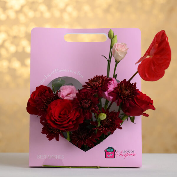 • Box Design: Heart cut-out centerpiece with floral arrangement to match